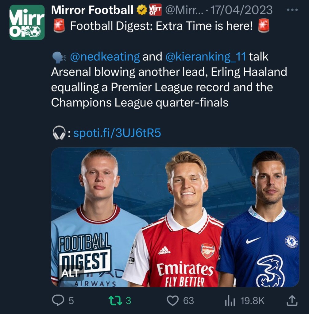 I received an email from Ned Keating, who needed someone to help him with Football Digest Extra-Time. I decided to take up on that offer after another scintillating weekend of Premier League football. In this episode, I was tasked to speak about topics which included Arsenal’s title collapse, Haaland’s form and Manchester United’s win over Nottingham Forest. As I always do, I conducted thorough research to ensure I could provide fans and listeners with the best possible insight.